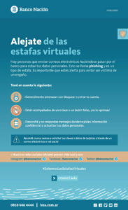 - Si recibís un aviso sobre un supuesto error al realizar una transferencia bancaria, no respondas y comunicate con el Banco.