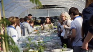 La actividad contó con la participación de la directora del establecimiento, Karina Pesajovich; la docente de Química, Cecilia Altimira; la docente de Ciencias Sociales, Maira Inés Reyes Persani y el docente de Ambiente, Desarrollo y Sociedad, Juan Pablo Martínez, y por el Municipio el subsecretario de Desarrollo Económico y Producción Germán Lauro, el director de Ambiente y Desarrollo Sustentable Facundo Splendiani, y la directora de Espacios Verdes Germana Cuniberti.