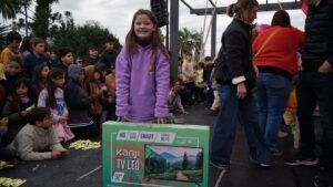 El premio está compuesto por un carro, con un juego de mesa denominado “Tortazo”, un Jenga, una pelota y un set de arte.