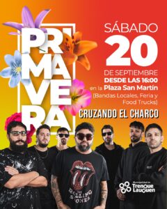 Originaria de La Plata, “Cruzando el Charco” tiene más de 15 años de trayectoria y llega por primera vez a Trenque Lauquen con su banda completa. Su estilo combina rock con ritmos rioplatenses como ska, cumbia y candombe, y actualmente recorren el país presentando su último disco. “Seguramente va a ser muy bien recibida por la gente de Trenque Lauquen y de toda la zona que se acerque a festejar”, subrayó Ruiz.