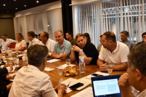 Durante la mañana los intendentes convocaron a dos expertos en tributos y coparticipación para estudiar datos históricos y proyecciones. En dos bloques de exposición Agustín Lodola, Director del Laboratorio de Desarrollo Sectorial y Territorial de la UNLP, y Mariano Chamorro, Director Provincial de Coordinación Municipal y Programas de Desarrollo, hicieron un exhaustivo informe sobre los ingresos provinciales y la incidencia en la coparticipación de los municipios, que por los vaivenes de la economía y las dificultades para proyectar tienen preocupados a los intendentes.