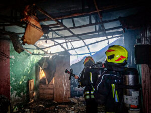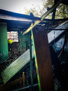 Una vez controlado el incendio se realiza remoción y enfriamiento de los materiales afectados. Los daños que se registraron fueron totales.