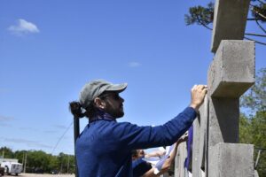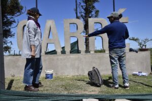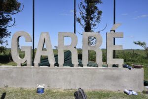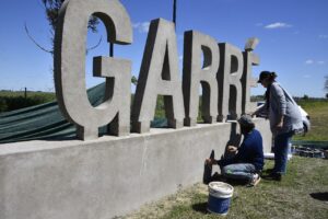 En el marco del 114º aniversario de Garré comenzaron los trabajos artísticos para dejar pintado el cartel de letras de hormigón con el nombre de la localidad, ubicado en el Punto Tripartito.