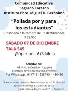 La Comunidad Educativa Sagrado Corazón organiza una pollada para recaudar fondos para la compra de un desfibrilador.