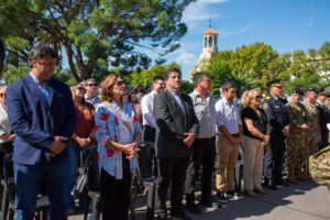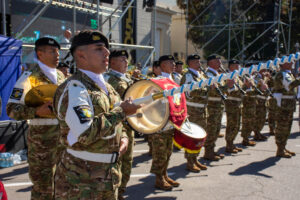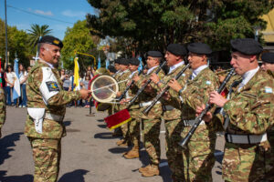 El acto contó con el acompañamiento de la Banda Militar “Malvinas Argentinas”, proveniente de la ciudad de Esquel, que con su repertorio aportó un marco de solemnidad y emoción a la celebración.