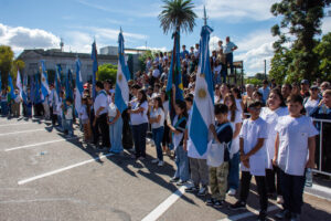 banderas de instituciones educativas, policiales, fuerzas vivas, colectividades e instituciones de la comunidad.