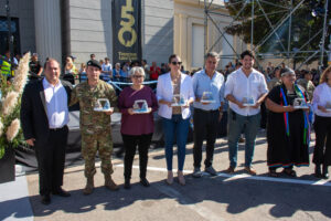 A continuación, se escucharon los mensajes alusivos, comenzando por la Lonko Isabel Araujo, representante de la Comunidad Mapuche-Tehuelche Cacique Pincén y la Inal Lonko Anahí Mansilla.