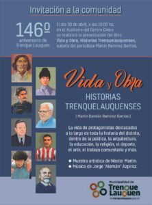 Hoy sábado a partir de las 19:00 en el Auditorio del Centro Cívico, el periodista Martín Ramírez Barrios presentará su libro “Vida y Obra, Historias Trenquelauquenses”.