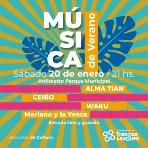 La movida en el Anfiteatro de El Parque dará comienzo a las 21 y se concentrará en el género folclore: actuarán Alma Tian, Ceibo, Waku y Mariano y la Yesca. La entrada será libre y gratuita.