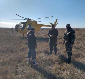 A bordo del helicóptero, que llegó a Beruti procedente de Carlos Casares, hay personal policial encabezado por el titular de la Comisaría Primera, Sebastián Bartolomé.