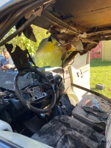 Se procede a realizar apertura controlada para realizar tareas de extinción en el interior del vehículo. Luego, se realiza ventilación natural en el habitáculo para retirar el humo acumulado.