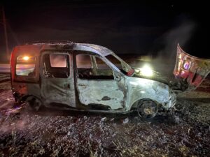 Siendo las 21:37hs se recibe un llamado a la guardia del cuartel central dando a conocer sobre un incendio vehicular en la Ruta Nacional 5 Km 461.