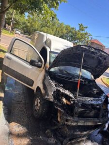 Al arribo de la dotación se observa una Fiat Fiorino estacionada sobre la vía pública, con un incendio originado generalizado en la parte delantera con peligro de propagación hacia el interior.