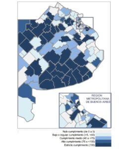A su vez 24 distritos obtienen el nivel medio de información publicada y 31 un nivel bajo o regular. Un total de 23 distritos se ubican en el rango de nivel nulo en cuanto a publicación de la información presupuestaria y de ejecución relevada.