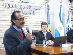 Anoche, en la antesala de la 11ra. Sesión Ordinaria, el artista agradeció al Cuerpo de concejales y a las autoridades municipales por la oportunidad de construir una Escuela de Muralismo “desde cero” y remarcó el apoyo y acompañamiento de varios artistas locales. “El arte nos permite reencontrarnos como hermanos latinoamericanos; ese es el aporte que quiero dejar”, expresó Mata ante los concejales.