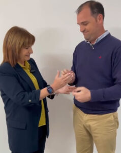 “Me encontré con Patricia (Bullrich) y le agradecí haber asumido con coraje ser una protagonista fundamental de los destinos de nuestro país en estos momentos tan difíciles que estamos viviendo. Representando con sentimiento al interior, su producción y sus mujeres y hombres de trabajo”, posteó con un video donde se saluda con un beso y estrechándose la mano el intendente de Rivadavia Javier Reynoso.