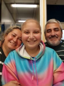 Mientras tanto, la joven intenta seguir el ritmo de la escuela aunque hay días y días ya que el ánimo no siempre es el mejor. Al iniciar las clases este año, en 3ero de la Escuela Técnica, apenas alcanzó a ir dos semanas cuando comenzó a tener problemas respiratorios y rápidamente le diagnosticaron “linfoma en el mediastino”, un cáncer en la zona pulmonar que requirió una internación en el Hospital Garrahan en la Ciudad de Buenos Aires con un tratamiento de por lo menos 6 meses con varias fases de quimioterapia que le impide volver a Trenque Lauquen por el momento.