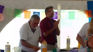 El Intendente municipal, Miguel Fernández, el diputado provincial Valentín Miranda, y el referente del Centro de Atención Personalizada del PAMI, Martín Sotullo Lanz, se acercaron hasta el predio para acompañar y compartir el almuerzo con los vecinos/as y el personal que trabajó durante estos dos meses de verano.