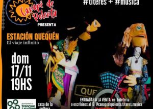 Con el acompañamiento de la dirección de Cultura de la Municipalidad de Trenque Lauquen, se presentará en nuestra ciudad la compañía Canapé de Polenta, títeres + música, con su espectáculo “Estación Quequén, el viaje infinito”.