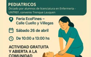 En esta oportunidad, se realizará un curso de primeros auxilios y RCP básico en adultos y pediátricos que estará a cargo de estudiantes de la Licenciatura en Enfermería, que se dicta en Trenque Lauquen en convenio con la Municipalidad, el programa Puentes del gobierno de la Provincia de Buenos Aires y la Universidad Nacional de Tres de Febrero.