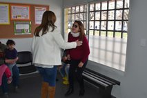 La visita a la ciudad culminó con una recorrida por el CAPS Ameghino donde charló con el personal y un grupo que estaba reunido en el lugar realizando una actividad.