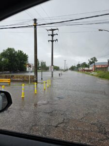 Hubo escenas puntuales como la “fuente” de agua que surgía de una boca de tormenta ubicada en la esquina de Simini y Granada, cuyo video se viralizó y fue publicado en nuestras redes sociales. También el canal de la calle Llambías se vio desbordado.