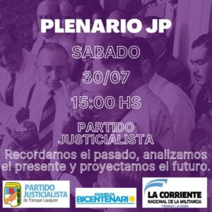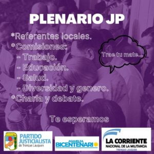 Desde la Secretaría de Juventud del Partido Justicialista, junto con Asamblea Bicentenario y La Corriente se ha organizado un Plenario sobre diversos temas en la sede partidaria del PJ de la ciudad de Trenque Lauquen.