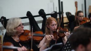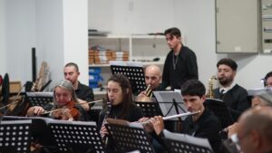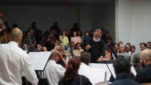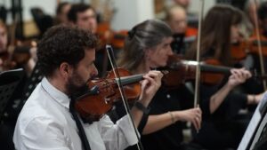 A continuación, y para cerrar la interesante velada se presentó la Orquesta Sinfónica de la Municipalidad de Trenque Lauquen, que dirige el Maestro Virzi, con el siguiente repertorio: Sinfonía VII – Segundo Movimiento/L. V. Beethoven; Sinfonía 40 – Primer Movimiento/W.A. Mozart; Perfidia/C. Domínguez.
