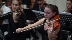 La apertura del concierto estuvo a cargo de la Orquesta Juvenil que presentó el siguiente repertorio: Suite para Cuerdas N°1 – 1° Mov. – Larghetto e pesante-Impromptu/Jean Sibelius, Finn McCool/Robert Buckley, Allegretto/Béla Bartók, Allegro Robusto Allegro; Can’t Help Falling In Love/Elvis Presley, Please Please Me/The Beatles.