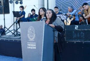 “Acá estamos nuevamente acompañando los actos por la fundación de Trenque Lauquen, el 149° aniversario, y la verdad que en estos tiempos que corren tan difíciles, donde todo se nos hace bastante cuesta arriba Trenque Lauquen es un refugio y ejemplo para nosotros y nosotras de diálogo y de proyectos permanentes”, comenzó su discurso la Lonco Isabel Araujo en representación de la Comunidad Mapuche Tehuelche Cacique Pincén.