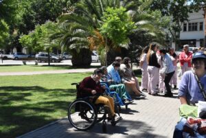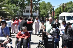 Los integrantes del Hogar Cumen Che y del Centro de Día, acompañados por la directora del área, Ana Etchepare y personal de ambas instituciones recorrieron esta mañana (martes) el centro de la ciudad para tomar contacto con los vecinos/as y promover la inclusión en todos los ámbitos de la sociedad.