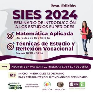 La UTN, los Institutos de Formación Docente y Técnica n°40 y n° 144 e Inspección del nivel secundario, con el acompañamiento del municipio organizan un Seminario de Introducción a los Estudios Superiores, denominado “SIES 2024” con el objetivo de preparar a los estudiantes para continuar sus estudios.