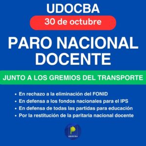 Los sindicatos SUTEBA, Udocba y FEB realizarán una medida de fuerza mañana para reclamar al Gobierno la restitución del FONID y de las partidas educativas. Los gremios universitarios tampoco asistirán a las facultades.