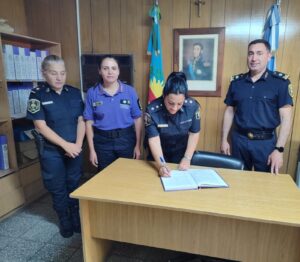 El Jefe Departamental Marco Antonio Arregui y la Coordinadora Zonal de Políticas de Género Comisario Insp. Daniela Herrera pusieron en funciones a la nueva Titular de la Comisaría de la Mujer y la Familia de Trenque Lauquen, la Oficial Inspector María Emilia Nievas.
