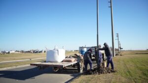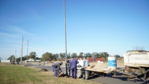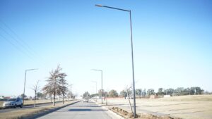 Por un lado, personal del área de Alumbrado Público –una cuadrilla de cinco agentes–, junto con tres trabajadores de Obras Sanitarias, colocó 16 columnas con artefactos LED de 100W de potencia, con brazo de 7 metros de altura, en dos cuadras de la Av. Dr. Jorge A. Barracchia, entre F. M. Macaya y Raúl Alfonsín. Estas obras fueron realizadas en las cuadras asfaltadas en 2024, y fueron encendidas anoche (jueves).