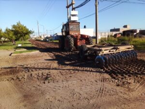 Personal y maquinaria de la dirección de Infraestructura municipal está trabajando en la tercera prueba de mejorado de suelo en la Ampliación Urbana, en calle Melvin Jones, entre Papa Francisco y Papa Juan Pablo II.