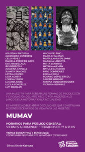 .19 hs.: Actividad en el Museo Municipal de Artes Visuales (MUMAV). Inauguración de las muestras «Visible lo invisible» y «Vecindad Secreta», con el apoyo del Museo Provincial de Bellas Artes “Emilio Pettorutti” y la participación de la docente María Cristina Goires.