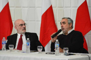 La anfitriona fue la Presidenta de la UCR local, Gabriela Aimar, y además de Miguel Fernández, el panel de expositores estuvo integrado por el Director de Cultura y Educación Municipal, Guillermo Ruiz, y por el Coordinador del Grupo de Cultura de la UCR provincial y de la Fundación Poder, Daniel Montes.