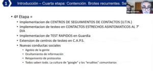 En la charla, que se extendió por más de una hora y media con interacción y respuesta de consultas por parte de los asistentes, MF repasó cómo fueron los inicios de la pandemia en Trenque Lauquen, remarcó que los borradores iniciales de protocolos que parecían que no se iban a utilizar terminando siendo útiles, y citó el plan de crear un área de epidemiología, el equipamiento con nueva tecnología para el laboratorio municipal, la derivación de pacientes no Covid a la Clínica y la necesidad de hacer testeos masivos para detección temprana de casos positivos.