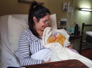 La colocó en el pecho de la mamá y comenzó a masajearle la espaldita hasta que comenzó a llorar, para ese momento, la pareja que son creyentes en Dios no paraban de orar con la convicción que todo estaría bien; lo que finalmente sucedió.