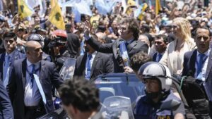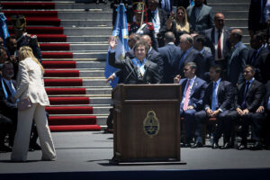 “Comienza una nueva era en Argentina, de paz y prosperidad, de libertad y desarrollo”, dijo Milei en las escalinatas del Congreso, hablando de cara a la gente que lo vivaba desde la plaza y de espaldas a los legisladores que acababan de participar de la Asamblea Legislativa. En una alocución de 45 minutos, admitió que en los próximos meses tomará decisiones duras: “En el corto plazo la situación empeorará, pero luego veremos los frutos de nuestro esfuerzo”.