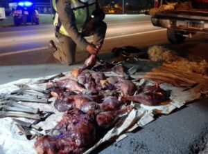 Espontáneamente el conductor, de 28 años de edad, expresó que se trataba de ñandúes y liebres cazados al suroeste de la provincia de Buenos Aires y que estuvieron el fin de semana en campos de la zona rural de Salliqueló.