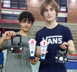 En otra excelente participación del equipo de Robótica avanzada del Polo Científico Tecnológico Municipal en una nueva fecha de la Liga Nacional de Robótica, Valentino Gómez Muñoz obtuvo el primer puesto en Laberinto (con un robot de su docente y tallerista Juan Pablo Rivelli) y un segundo lugar en Carreras Pro con turbina; y Franco Morales también se quedó con el primer puesto en Carreras Pro.