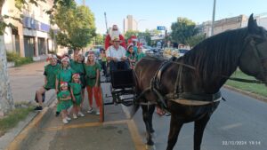 Como estaba previsto, Papá Noel visitó ayer la ciudad de Trenque Lauquen. Llegó en una volanta, que gentilmente le prestó Mariano Falca, y estuvo acompañado por los Elfos, en una tarde en la que reinó la alegría y el entusiasmo.