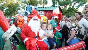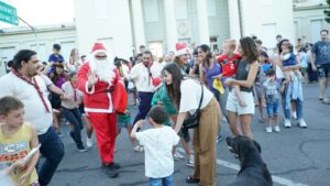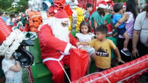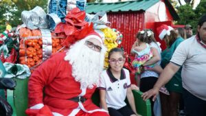Después de pasear por diferentes calles de Trenque Lauquen saludando a los vecinos/as se acercó a la Plaza San Martín, donde una multitud lo esperaba: numerosas familias y sobre todo niños/as quienes le entregaron sus cartitas con los deseos para esta Navidad.