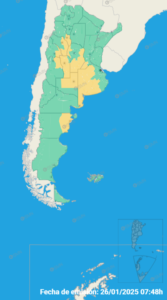Para la mañana del lunes rige alerta amarilla para la mitad oeste de la provincia, desde el norte hasta el sur.