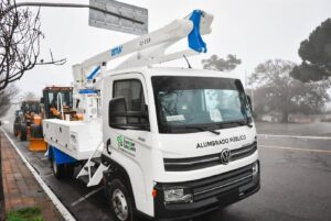 En el Plan de Renovación de Maquinarias y Herramientas, se sumó ahora un camión 0 kilómetro con hidroelevador para el área de Alumbrado Público adquirido mediante la licitación pública n° 2/2025 por un valor de 127.300.000 pesos.