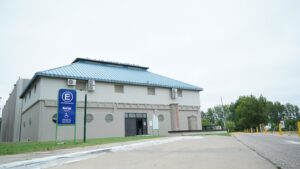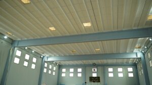 Luego de concretada la obra de iluminación de la pista de atletismo, canchas de fútbol y circuito peatonal, se realizaron tareas de mejoramiento en el gimnasio, office, sala de reuniones y también en el quincho, donde se avanzó en la pintura exterior y se está terminando con el interior del mismo.