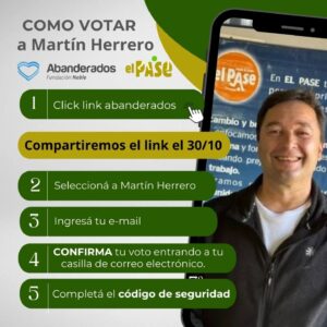 Martín Herrero, quien está nominado para el Premio Abanderados de la Argentina Solidaria 2025, por su compromiso y gran labor comunitaria como coordinador de “El Pase”. El Premio busca inspirar a la sociedad a través del ejemplo de personas que trabajan desinteresadamente por el bien común reconociendo los proyectos solidarios que generan un impacto positivo en sus comunidades.