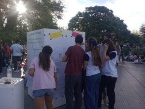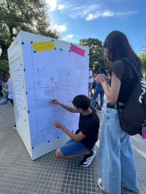 Ese día se colocó un dispositivo llamado CuCu [cubo] + [curioso] que llamó la atención de los transeúntes y más de 50 personas se acercaron para conocer de qué se trataba y participar del primer mapeo.